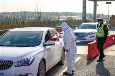 1月28日,2021年春運開啟。29日上午,在咸安區(qū)張公高速收費站路口,紅色水碼擺放成指引車道,幾個全副武裝的工作人員正對過往車輛逐一進行排查。遇到外地或中高風(fēng)險地區(qū)來車就指引其到帳篷內(nèi)測體溫、查健康碼等,并詳細登記對方信息。