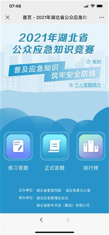 據(jù)了解,湖北省委宣傳部、湖北省突發(fā)事件應急管理委員會辦公室聯(lián)合發(fā)起2021年湖北省公眾應急知識競賽活動。此次活動旨在深入貫徹落實《中共湖北省委宣傳部、湖北省突發(fā)事件應急管理委員會辦公室關(guān)于廣泛學習宣傳和深入普及公眾應急知識的通知》要求,更好地提升全民應急素質(zhì),在全社會形成人人知安全風險、人人樹風險意識、人人筑安全基礎(chǔ)的良好氛圍。