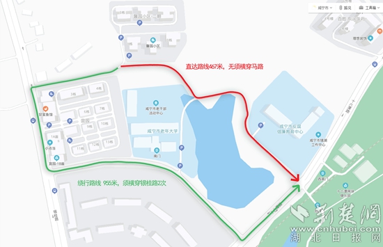 這條路位于咸寧市城區(qū),是一條連接銀桂路和十六潭路的城市支路,于2021年3月建成通車,被命名為鏡湖路。《鏡湖路微循環(huán)工程公示牌》顯示,“本次規(guī)劃道路起點(diǎn)位于銀桂路,終點(diǎn)位于鏡湖路,規(guī)劃全長(zhǎng)358.46米,設(shè)計(jì)車速20千米/小時(shí),為城市支路。該路建成增加了馨園小區(qū)357戶居民車流集散通道,車輛進(jìn)入十六潭路的距離大大縮小,極大方面了居民出行;同時(shí)分流了繞行銀桂路車流,有效緩解了銀桂路交通壓力。