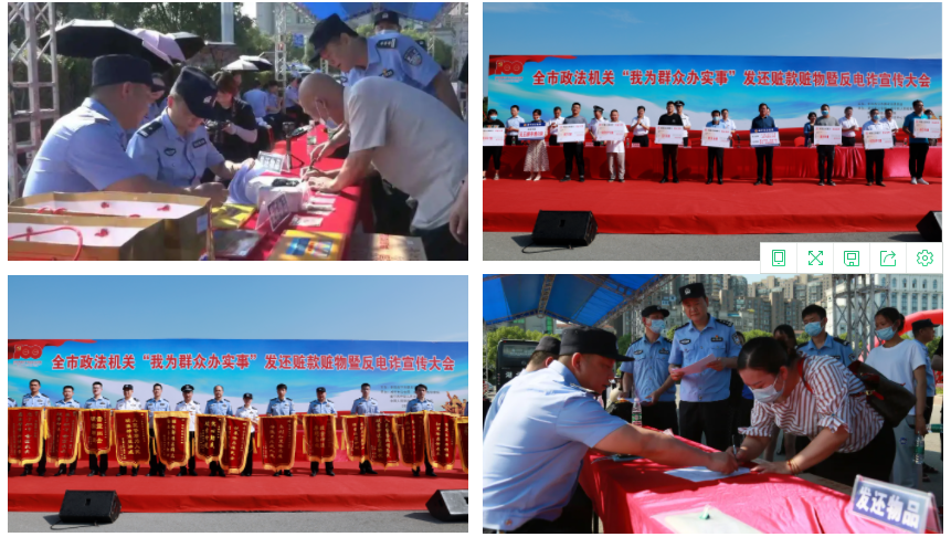 通過此次退贓大會,進一步向全市人民展示了咸寧公安扎實開展“我為群眾辦實事”活動成效,以及嚴打嚴防各類犯罪,致力“打防管控宣”,堅決斬斷伸向群眾錢袋子的黑手。