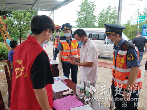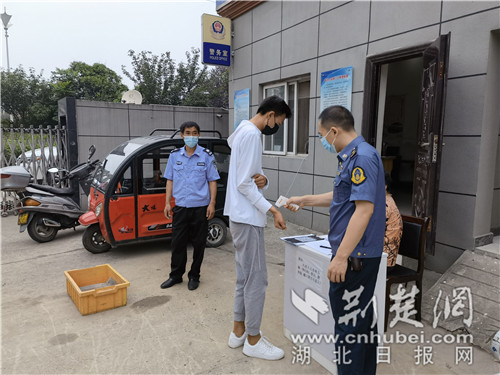 “大娘,請戴好口罩,我來幫您測下體溫。現(xiàn)在疫情有擴(kuò)散趨勢,千萬要做好防護(hù)。”8月6日,漢十支隊(duì)路政員陳紅濤一邊向居民宣傳防疫知識(shí),一邊熟練地替大家測量體溫。