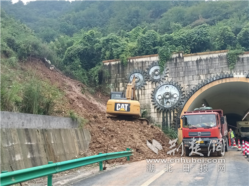 荊楚網(wǎng)(湖北日?qǐng)?bào)網(wǎng))訊(通訊員:金偉忠、宮正、張杰)8月16日至17日,強(qiáng)降雨天氣一直籠罩在湖北十堰市主城區(qū)以及鄖陽(yáng)、經(jīng)開(kāi)區(qū)等局部區(qū)域上空,導(dǎo)致G59呼北高速公路鄖十路段出現(xiàn)不同程度的邊坡垮塌、路面沖毀險(xiǎn)情。其中,損毀較為嚴(yán)重的為方家洼隧道出口處山體滑坡,大量泥沙、土石被沖刷至路沿排水溝及應(yīng)急車(chē)道,洶涌水流傾斜而下,誘發(fā)了高邊坡坡頂多處泥土松動(dòng)、坡面土石不穩(wěn)定,隨時(shí)有滑落到車(chē)道的可能,嚴(yán)重威脅道路行車(chē)安全。