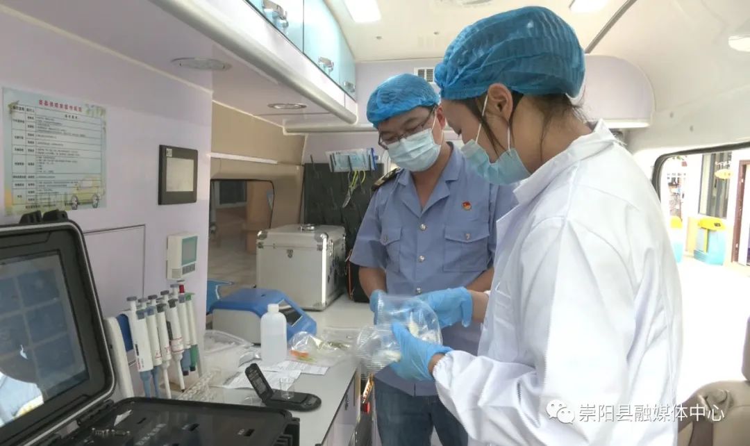 在崇陽縣第二幼兒園,檢測人員正在為采樣做準備,在將專業(yè)儀器、設(shè)備調(diào)試好后,對校園食堂里已經(jīng)過消毒的餐具進行拭子采樣,隨后將采樣的拭子放入檢測儀器中。