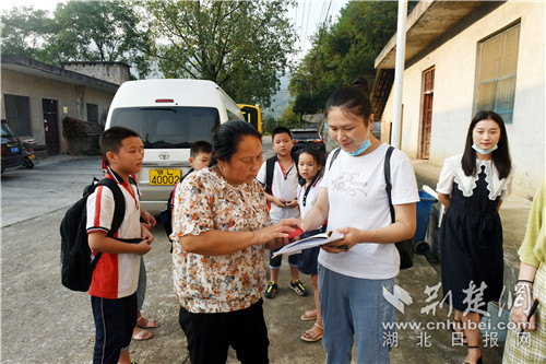 9月2日17時(shí)47分,崇陽(yáng)縣天城鎮(zhèn)鹿門(mén)鋪村9組村民黃燕保站在家門(mén)口等待乘坐校車的侄兒、侄女。