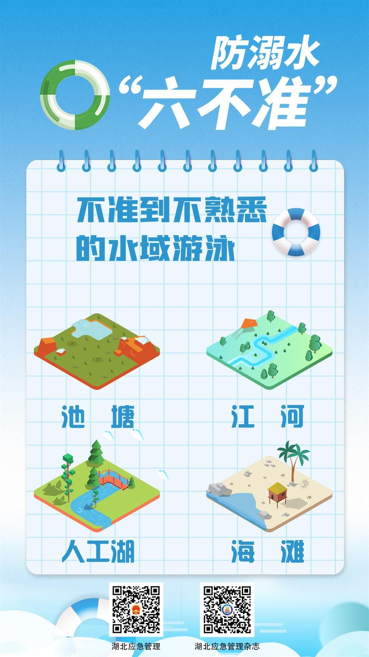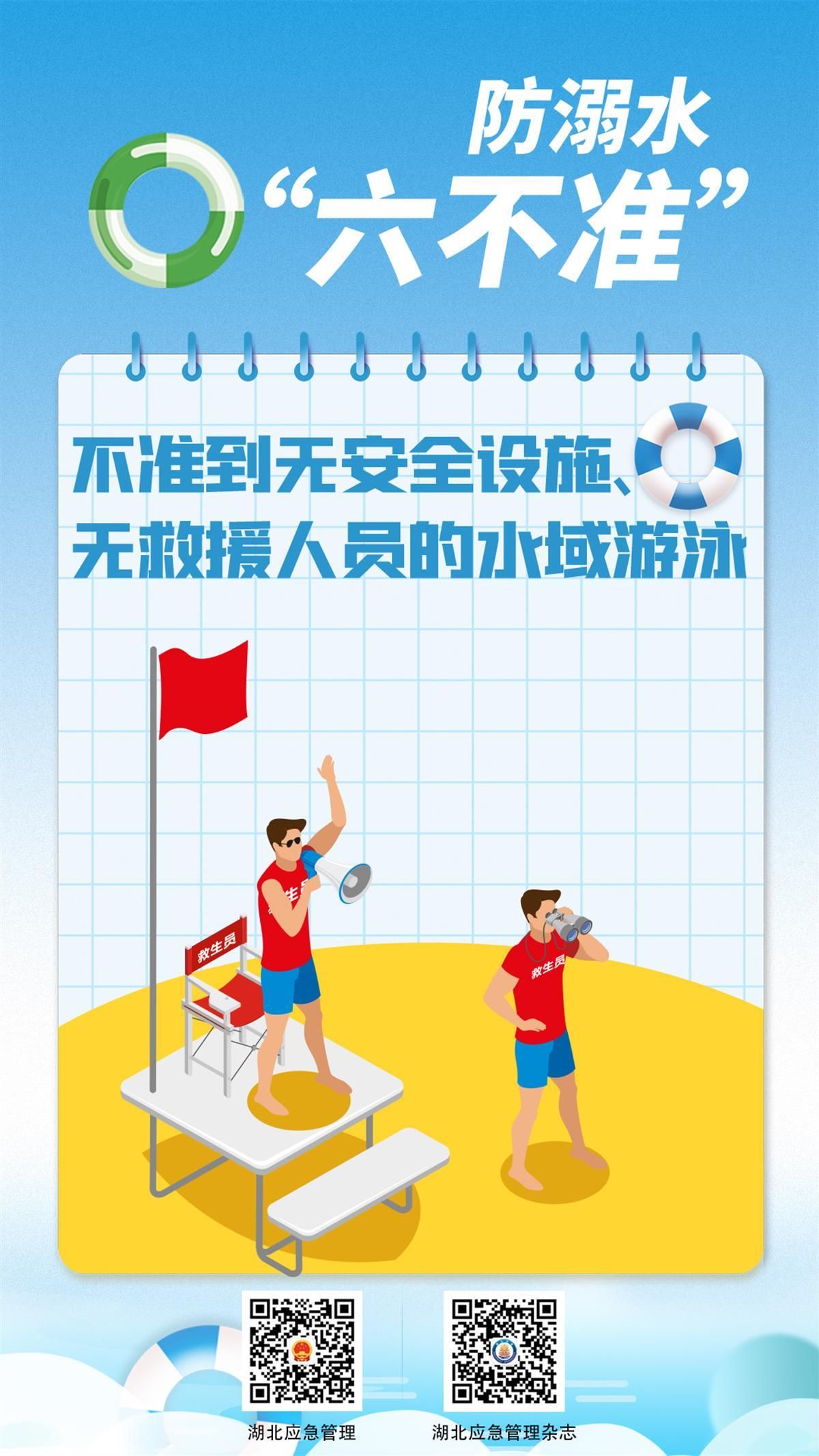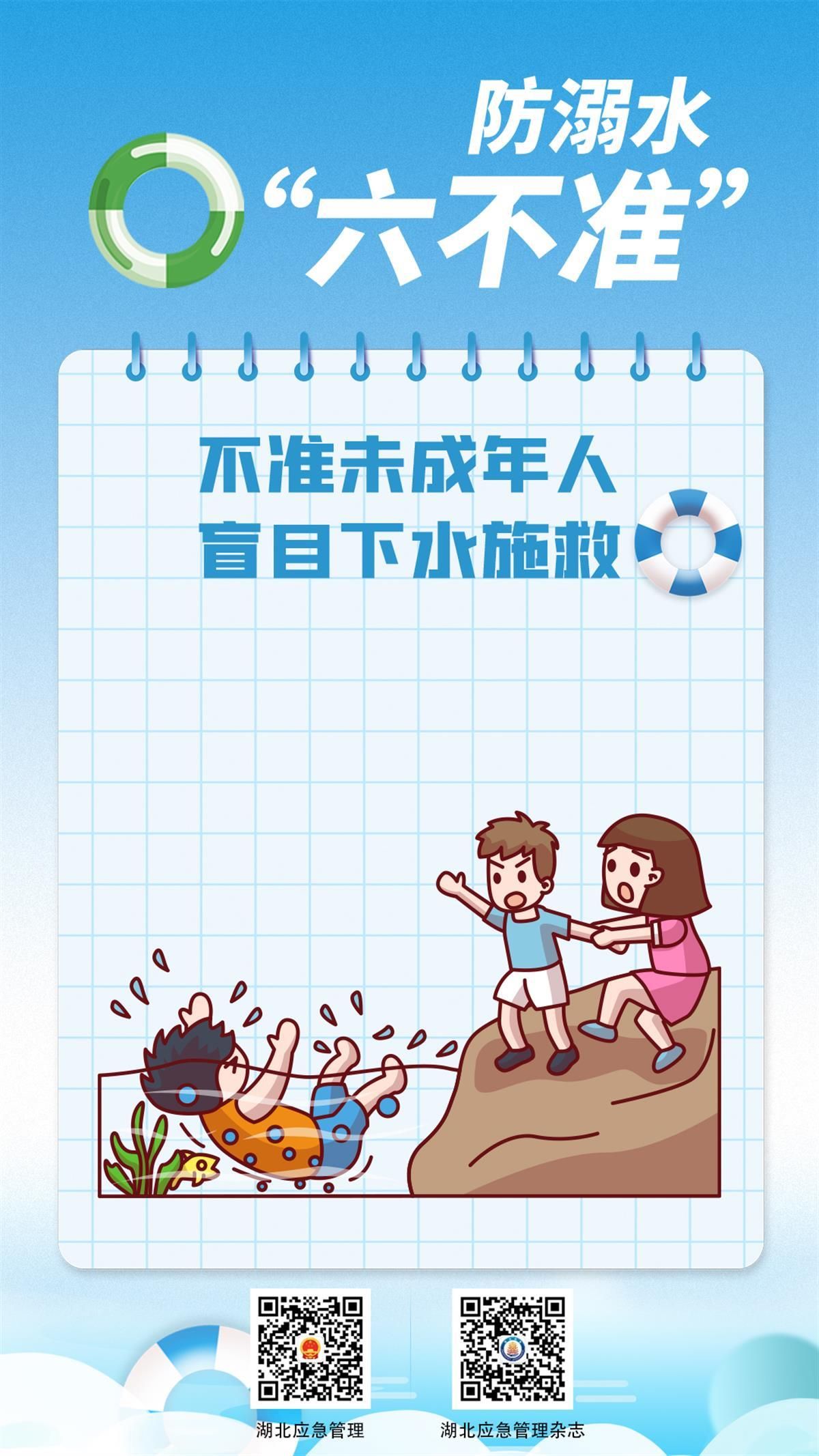 如何避免悲劇發(fā)生?7月8日,湖北省應急管理廳發(fā)布系列海報,提醒學生防溺水應做到“六不準”:不準私自下水游泳;不準擅自與他人結(jié)伴游泳;不準在無家長或教師帶領(lǐng)的情況下游泳;不準到無安全設施、無救援人員的水域游泳;不準到不熟悉的水域游泳;不準未成年人擅自下水施救。