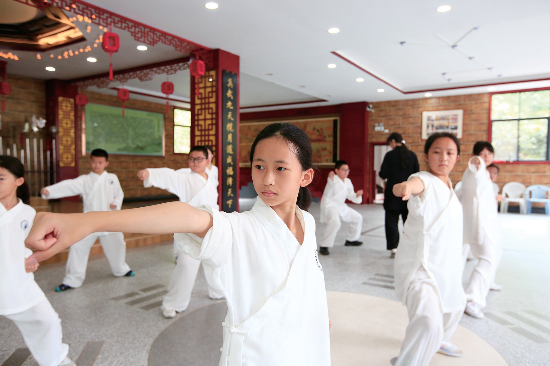 進(jìn)入暑假,武當(dāng)山各家武館開設(shè)的“功夫夏令營(yíng)”,迎來全國(guó)各地的孩子們習(xí)練武當(dāng)武術(shù)。他們多半在這里住半個(gè)月到一個(gè)月,除了習(xí)練武當(dāng)武術(shù),還學(xué)習(xí)書法、道家禮儀等,度過一個(gè)“不平凡的夏天”。