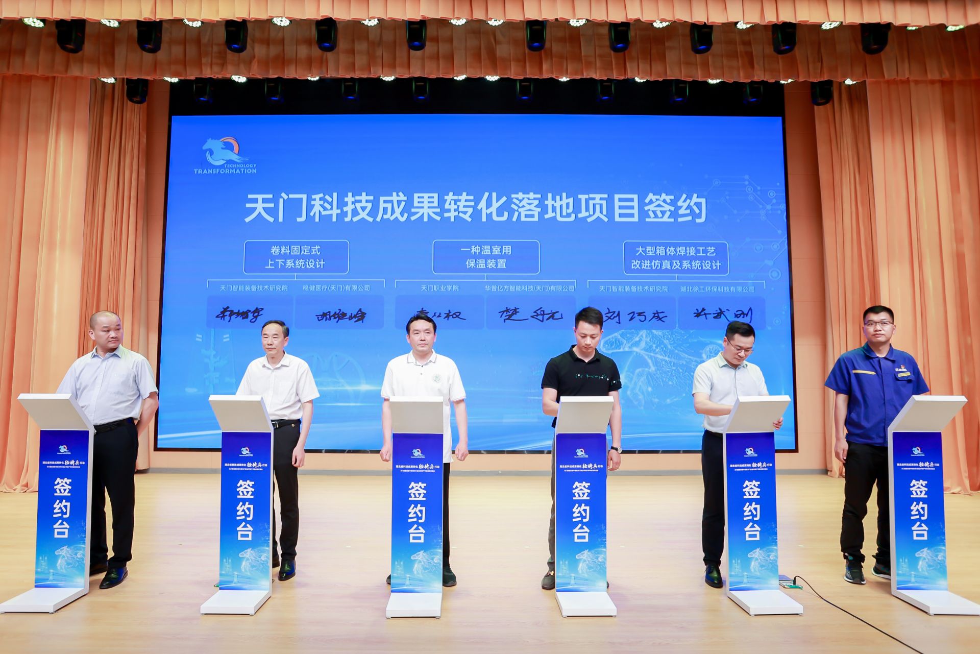 活動現(xiàn)場,天門智能裝備技術(shù)研究院、天門職業(yè)學(xué)院與穩(wěn)健醫(yī)療、天瑞電子、華普億方智能等企業(yè)的一批重大項目在現(xiàn)場成功簽約;天門職業(yè)學(xué)院與天門紡織機械、芯創(chuàng)(天門)電子、科瑞半導(dǎo)體等10家進行了企業(yè)“雙掛牌”授牌儀式;來自華中科技大學(xué)、湖北工業(yè)大學(xué)、江漢大學(xué)、湖北科技學(xué)院以及天門智能裝備技術(shù)產(chǎn)業(yè)研究院的一批科研成果在現(xiàn)場進行了推介路演。