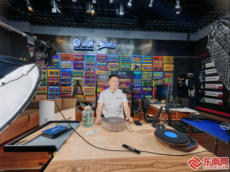 漢旗的直播間里,老板化身主播推銷漳州樂器。東南網(wǎng)記者 林永清 攝