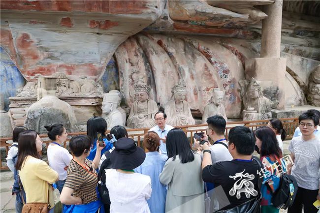 5月27-28日,2023年全國(guó)百家重點(diǎn)網(wǎng)絡(luò)媒體記者重慶行來(lái)到大足。在這里,來(lái)自全國(guó)近百家中央新聞網(wǎng)站和省、市級(jí)重點(diǎn)新聞網(wǎng)站的記者們與大足石刻近距離“對(duì)話”,感受石刻文化的魅力。
