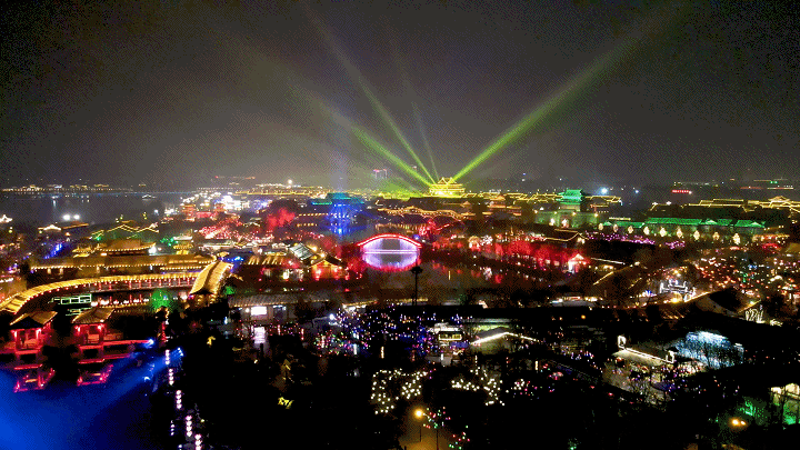夜晚的清明上河園同樣精彩紛呈,數(shù)百萬盞花燈點(diǎn)亮了虹橋和汴河,展現(xiàn)出大宋不夜城的璀璨夜景。此外,大型水上實(shí)景演出《大宋·東京夢華》每晚上演,為游客們呈現(xiàn)了盛世畫卷。