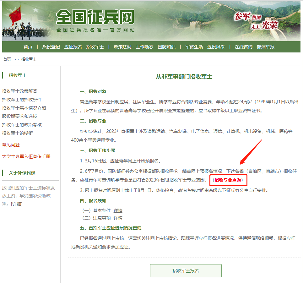 招收專業(yè)在直招軍士預(yù)報(bào)名時可以在全國征兵網(wǎng)進(jìn)行查詢。