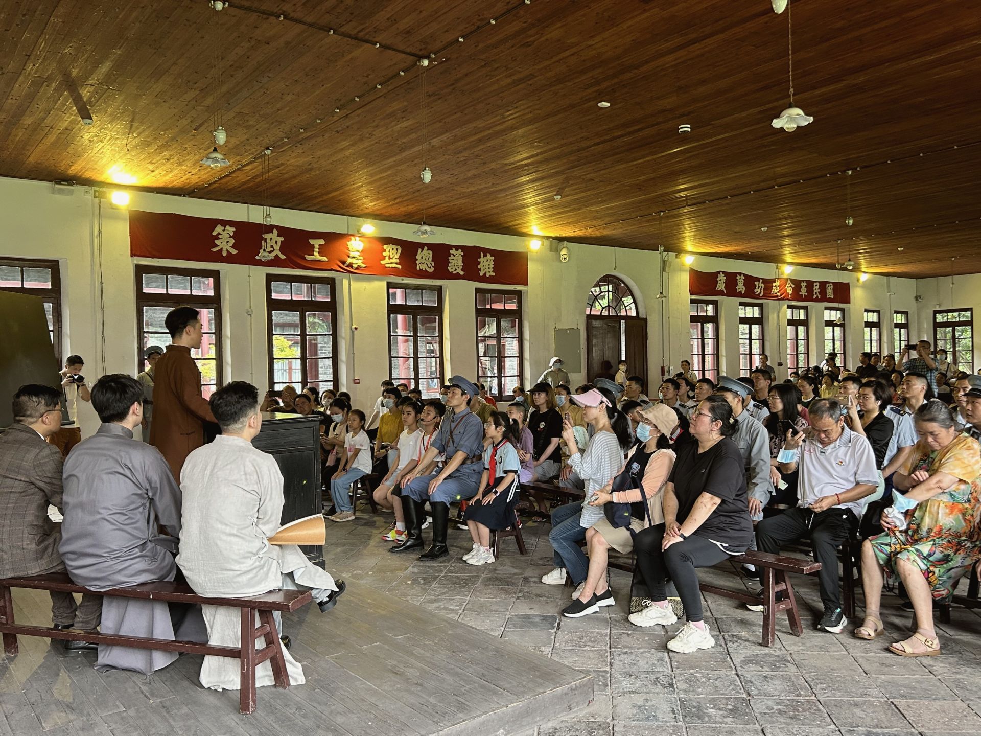 一幕幕歷史場景在革命舊址中鋪陳開來,觀眾們化身為“農(nóng)講所學(xué)員”“中共五大代表”等, 全程參與其中,穿越時(shí)空和革命先輩進(jìn)行歷史的對話。