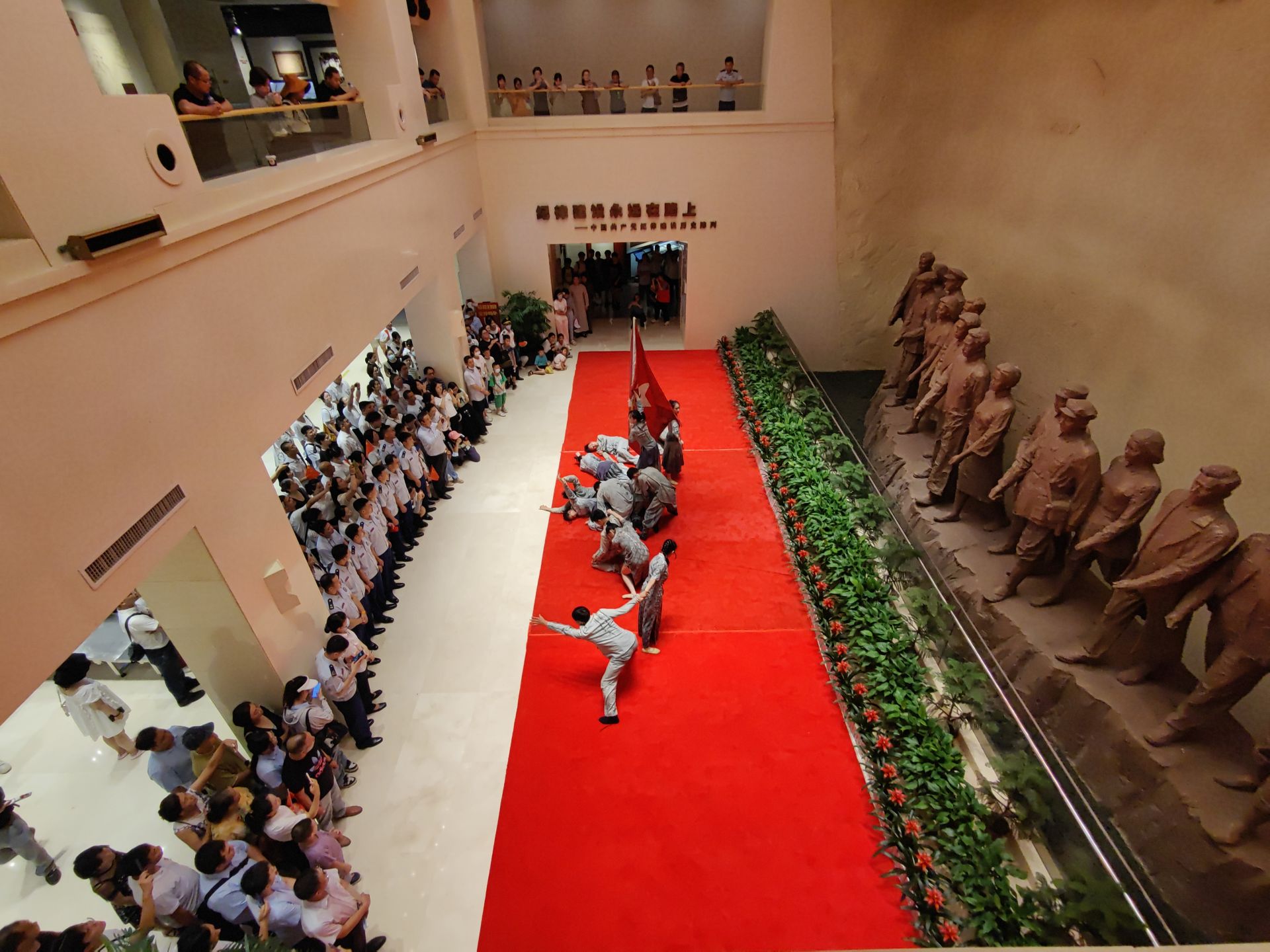 在中國共產(chǎn)黨紀(jì)律建設(shè)歷史陳列展序廳,《莊嚴(yán)的宣誓》生動詮釋了革命先烈對無產(chǎn)階級革命理想堅(jiān)守信念、無比忠誠、甘灑熱血、矢志不渝的崇高精神,慷慨激昂,感人至深。