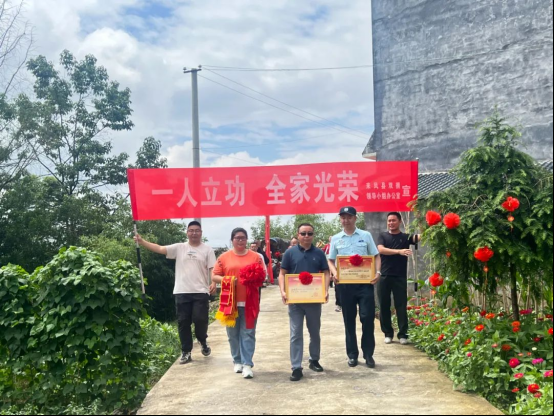 一人立功,全家光榮。現(xiàn)場,送喜報的工作人員為張森華和家人佩戴光榮綬帶戴上大紅花、送上立功喜報?!袄瞎闶俏覀円患业尿湴?,以后你守護(hù)國家,我守護(hù)小家,我是你最堅強(qiáng)的后盾。”新婚妻子吳睆高興的說道。