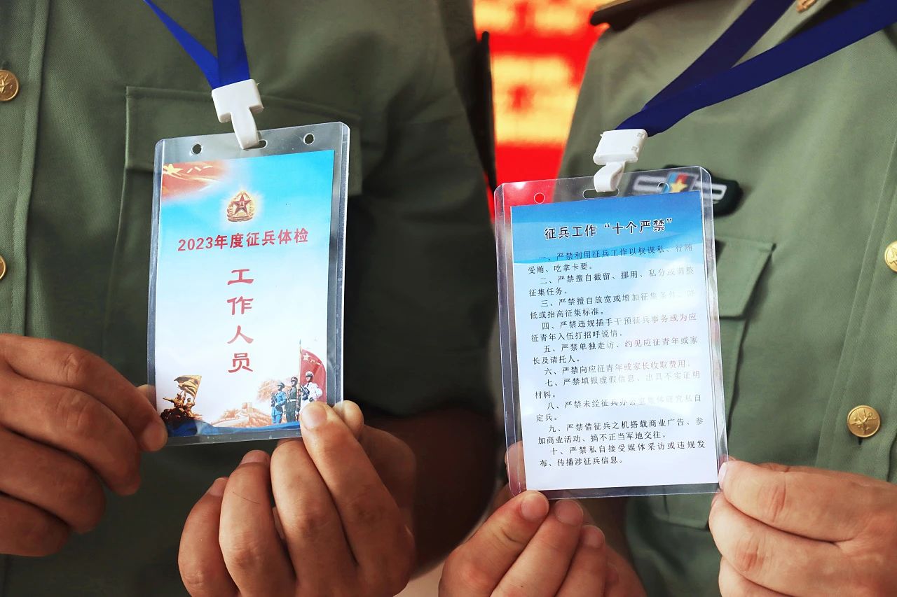 此外,工作人員及體檢醫(yī)生均持證上崗,工作證印有廉潔征兵“十不準(zhǔn)”,時(shí)刻提醒全體征兵人員繃緊“廉潔征兵”這根弦,確保均能做到心中有責(zé)、心中有戒。