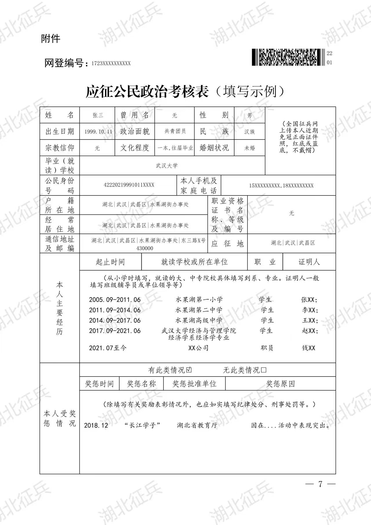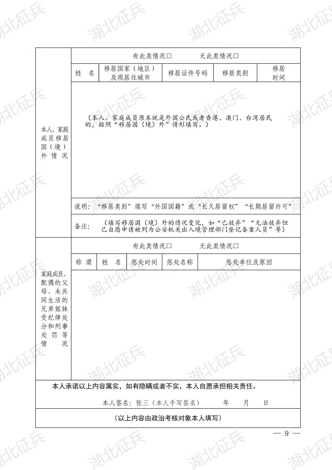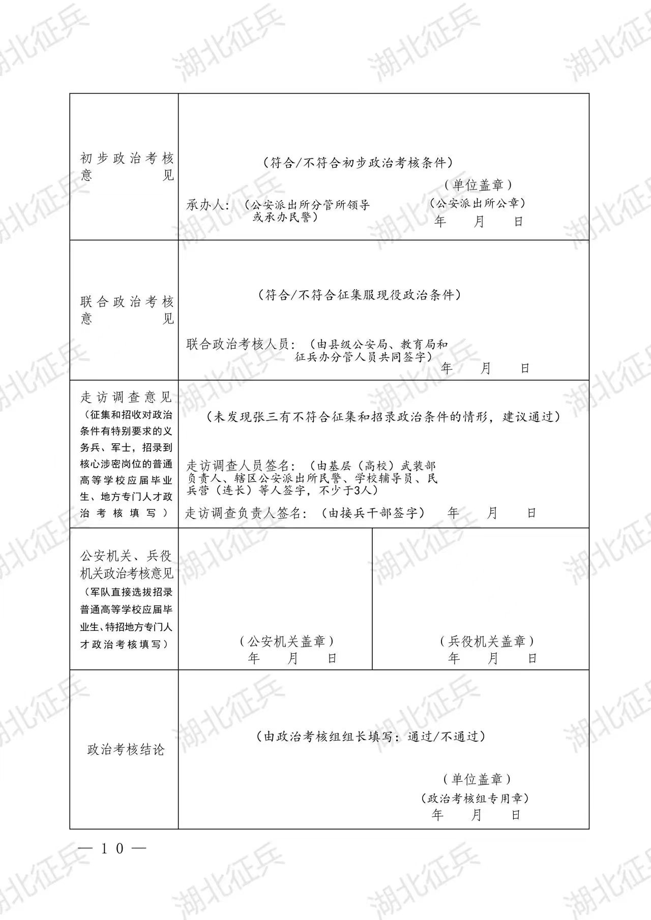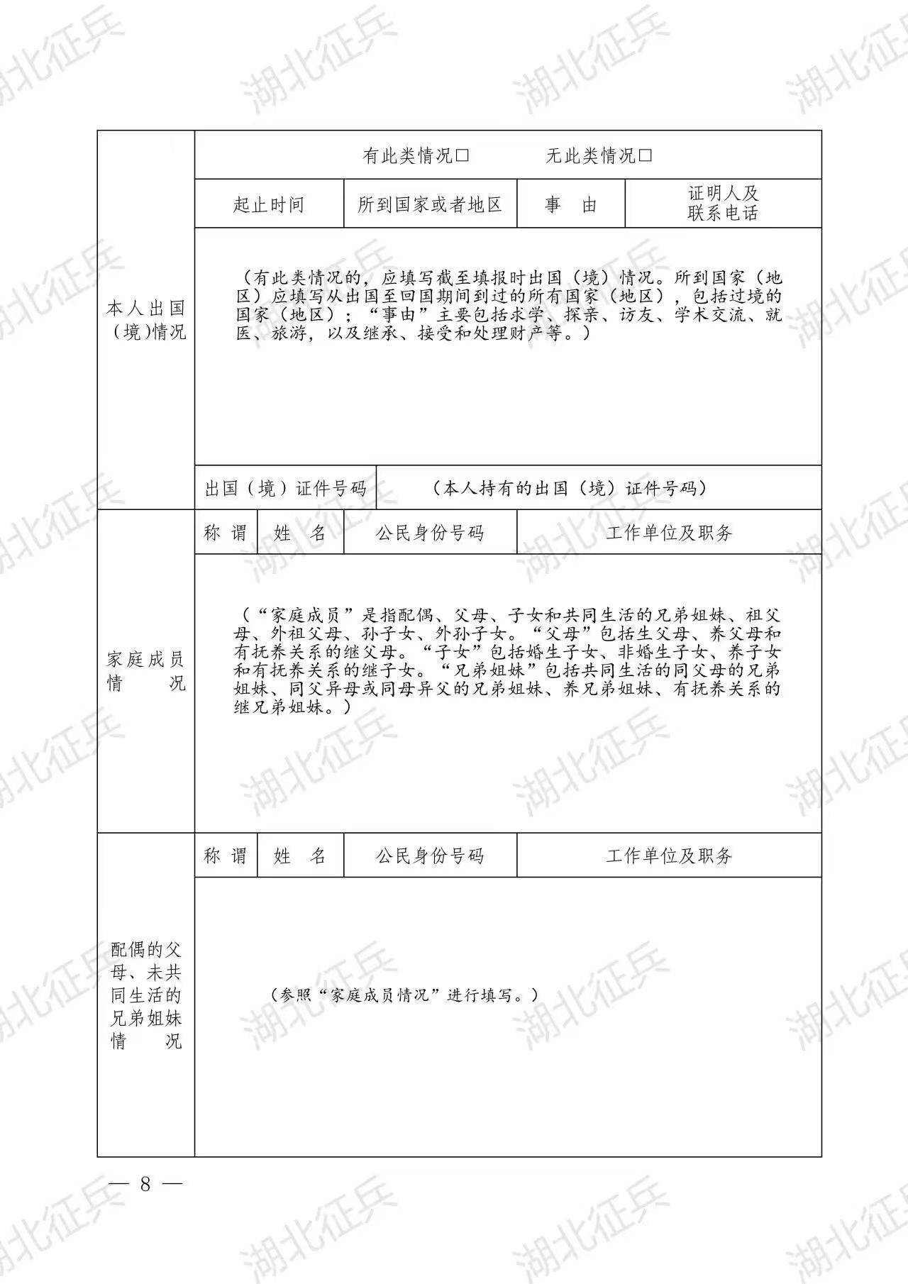 ②考核應(yīng)征公民的個(gè)人基本信息、政治面貌、宗教信仰、婚姻狀況、畢業(yè)(就讀)學(xué)校、文化程度、主要經(jīng)歷、出國(guó)(境)情況、現(xiàn)實(shí)表現(xiàn)、獎(jiǎng)懲情況,以及家庭成員、主要社會(huì)關(guān)系成員的政治情況等。