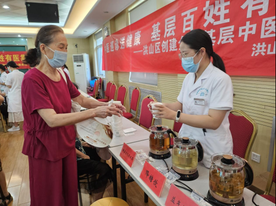 活動現(xiàn)場,梨園街東湖社區(qū)衛(wèi)生服務站家庭醫(yī)生團隊也在為居民進行血壓的檢測,中醫(yī)科帶來了多種養(yǎng)生茶飲,在辯證后為居民提供適合的茶飲進行體驗,將“舌尖上的養(yǎng)生”落到實處。此次進行茶飲體驗的居民由87人次。