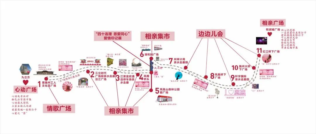 本次游園會項目建設,為探索夜間經(jīng)濟服務新模式,豐富“夜生活”,守護“夜消費”,建設“新夜態(tài)”,由恩施市文化和旅游局牽頭,湖北交投鄂西生態(tài)新鎮(zhèn)投資有限公司(以下簡稱湖北交投)、和潤城商場、九立方商場傾情加盟,助力建設州城清江沿線情歌廣場、相親集市、愛情印記展、相親廣場、“土”味情話燈盞長廊等場地,將游園會打造成全民共享的盛宴,將節(jié)日的歡歌與城市的煙火氣淋漓盡致的展現(xiàn)出來,打造夜間經(jīng)濟長廊。