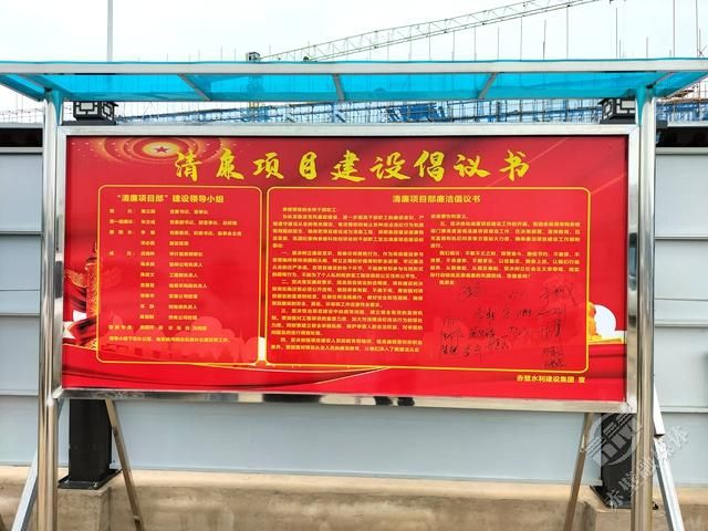 赤壁中試谷·智能無人系統(tǒng)測試基地赤壁市水建集團(tuán)項(xiàng)目部前的清廉項(xiàng)目建設(shè)倡議書的簽名板上,密密麻麻地簽滿了名字。一個(gè)簽名就是一份承諾,一個(gè)簽名就是一份責(zé)任,一個(gè)簽名就是水建集團(tuán)建設(shè)清廉國企的堅(jiān)實(shí)基礎(chǔ)。