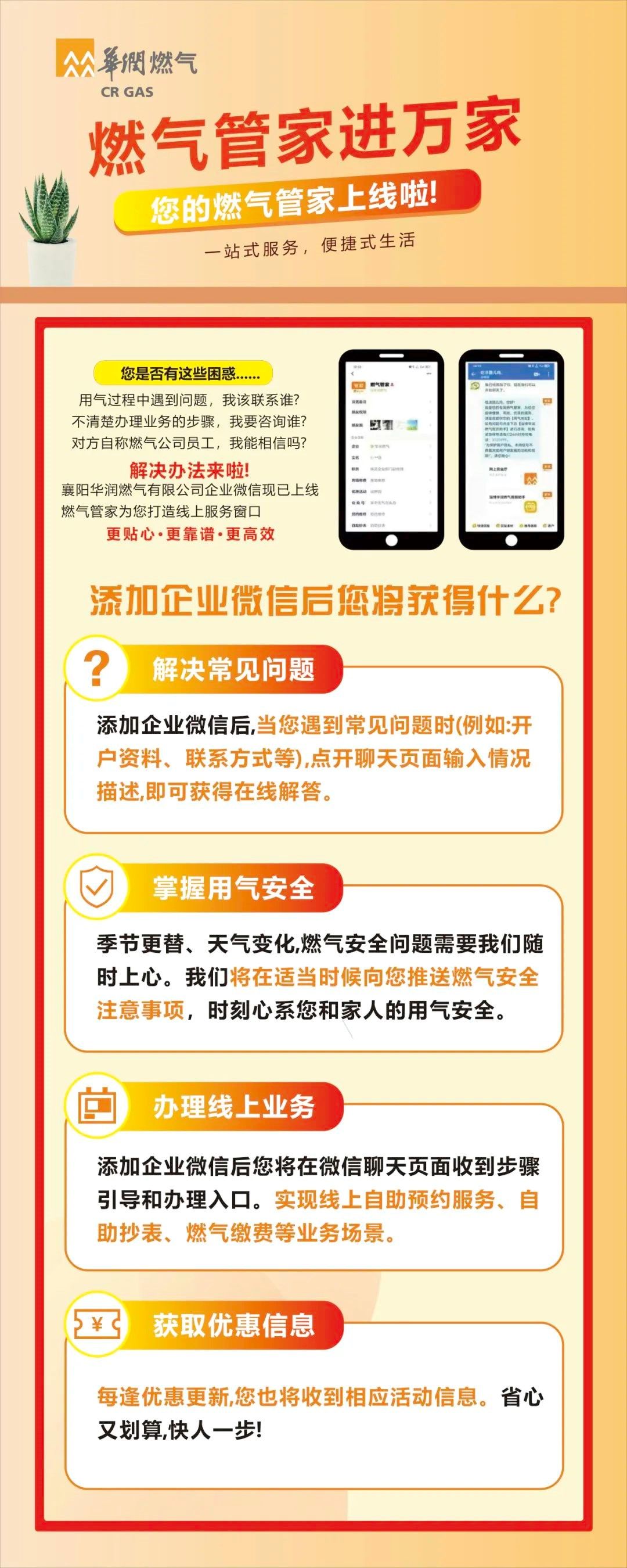 添加企業(yè)微信后,可以獲得解決常見(jiàn)問(wèn)題、掌握用氣安全、辦理用戶業(yè)務(wù)、獲取優(yōu)惠信息等具體問(wèn)題的解決方法。