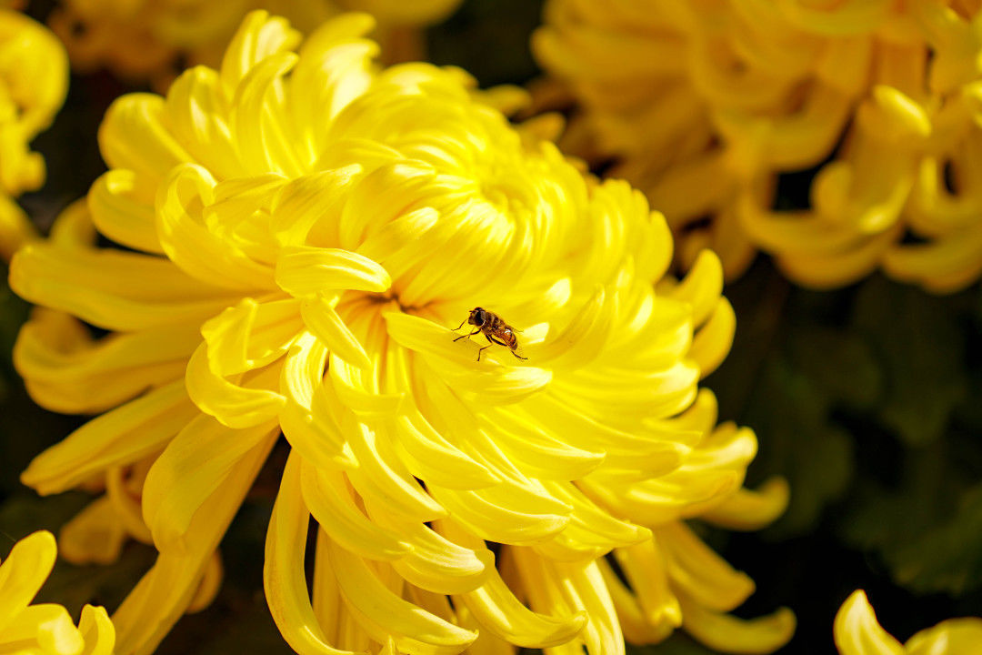 菊香引得蜂自來,滿園菊花齊爭(zhēng)艷!