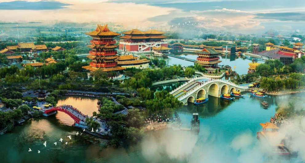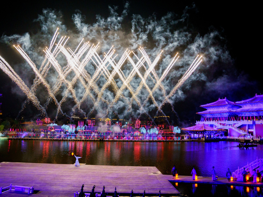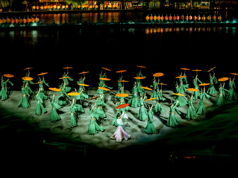 在景龍湖畔凝結(jié)為《大宋·東京夢(mèng)華》實(shí)景演出。