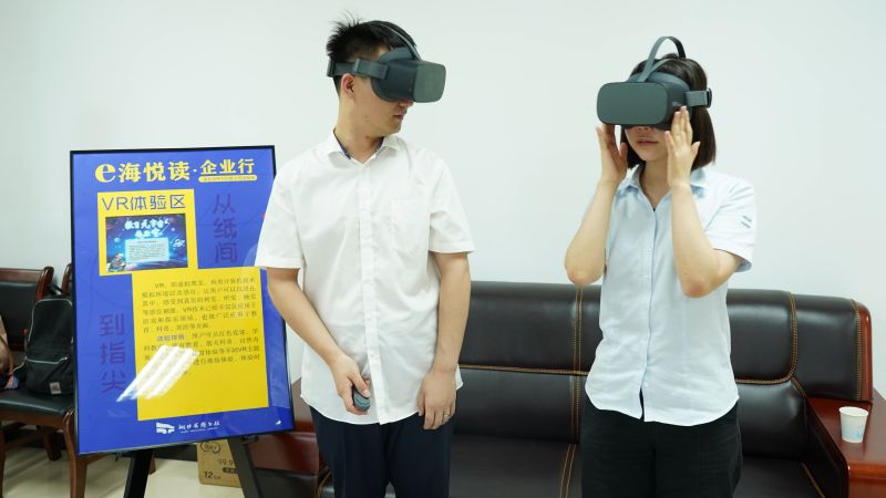 為了豐富資源服務(wù)模式,本次服務(wù)包括數(shù)據(jù)庫推介、VR沉浸體驗(yàn)、游戲互動、圖書暢讀及電子借閱證辦理等。在活動現(xiàn)場,企業(yè)職工不僅可以通過VR眼鏡帶來的虛擬現(xiàn)實(shí)技術(shù),直觀感受到另類讀法的趣味性;還能在輕松愉快的氛圍中參與“碼上猜書”等互動游戲,體驗(yàn)到移動閱讀的高效;更有楚天云遞工作人員現(xiàn)場指導(dǎo)大家操作選書下單,享受足不出戶借閱圖書的便利。此外,活動還專設(shè)了圖書暢讀區(qū),精選近百本近期大熱的紙質(zhì)圖書,供大家自取取閱,從紙間到指尖,將不同閱讀方式進(jìn)行展示與呼應(yīng),喚起閱讀帶來的樂趣與欣喜。