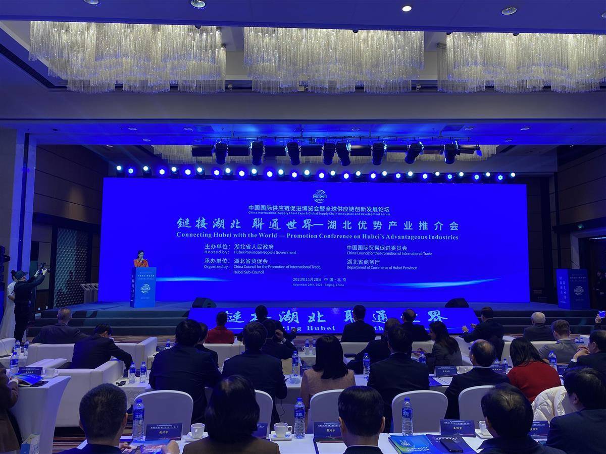 鏈接湖北,聯(lián)通世界。11月28日,借首屆中國國際供應鏈促進博覽會開幕東風,湖北省政府、中國國際貿(mào)易促進委員會在北京聯(lián)合舉辦“湖北優(yōu)勢產(chǎn)業(yè)推介會”,全球400多位嘉賓齊聚一堂,暢敘友誼、共謀發(fā)展,推動湖北企業(yè)積極融入全球產(chǎn)業(yè)鏈、供應鏈?!?/p>