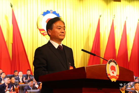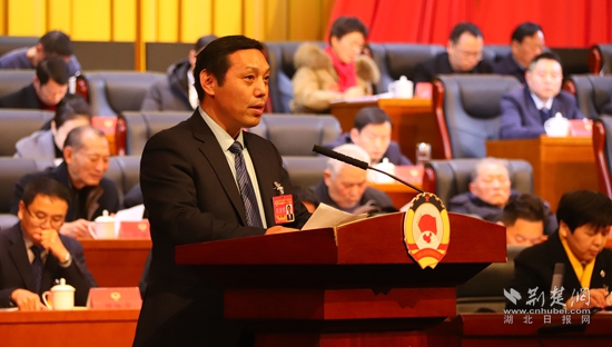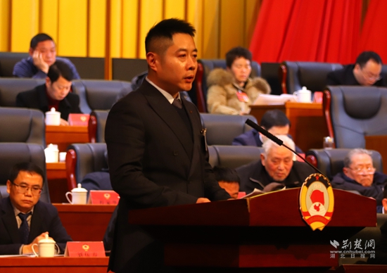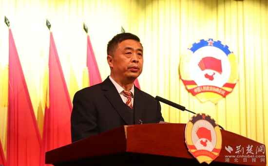 咸安區(qū)政協(xié)主席鎮(zhèn)權作工作報告。黃錚 攝