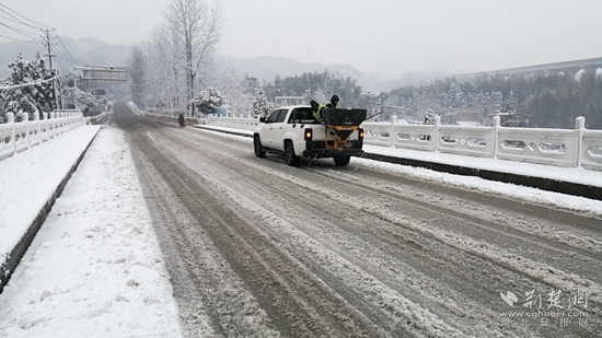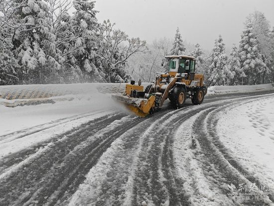 在各重點(diǎn)路段,工作人員迅速設(shè)置提示牌,并及時(shí)砍伐被積雪壓倒的楠竹等樹木。此外,還通過人工鏟雪、機(jī)械撒工業(yè)鹽等措施,爭取在最短的時(shí)間內(nèi)搶通受冰雪影響的道路。