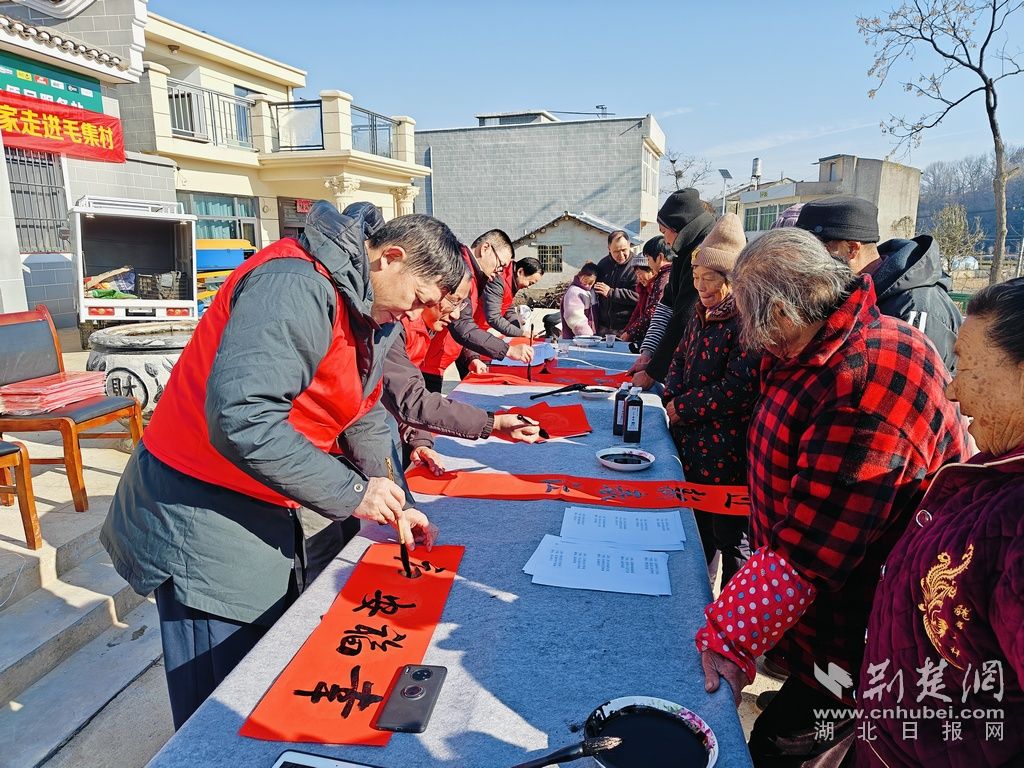 荊楚網(wǎng)(湖北日報網(wǎng))訊(通訊員陳冬青)1月24日,大悟縣新城鎮(zhèn)毛集村在禮山田園開展“情暖毛集送祝福 揮毫潑墨寫春聯(lián)”志愿服務活動,營造濃厚節(jié)日氛圍。