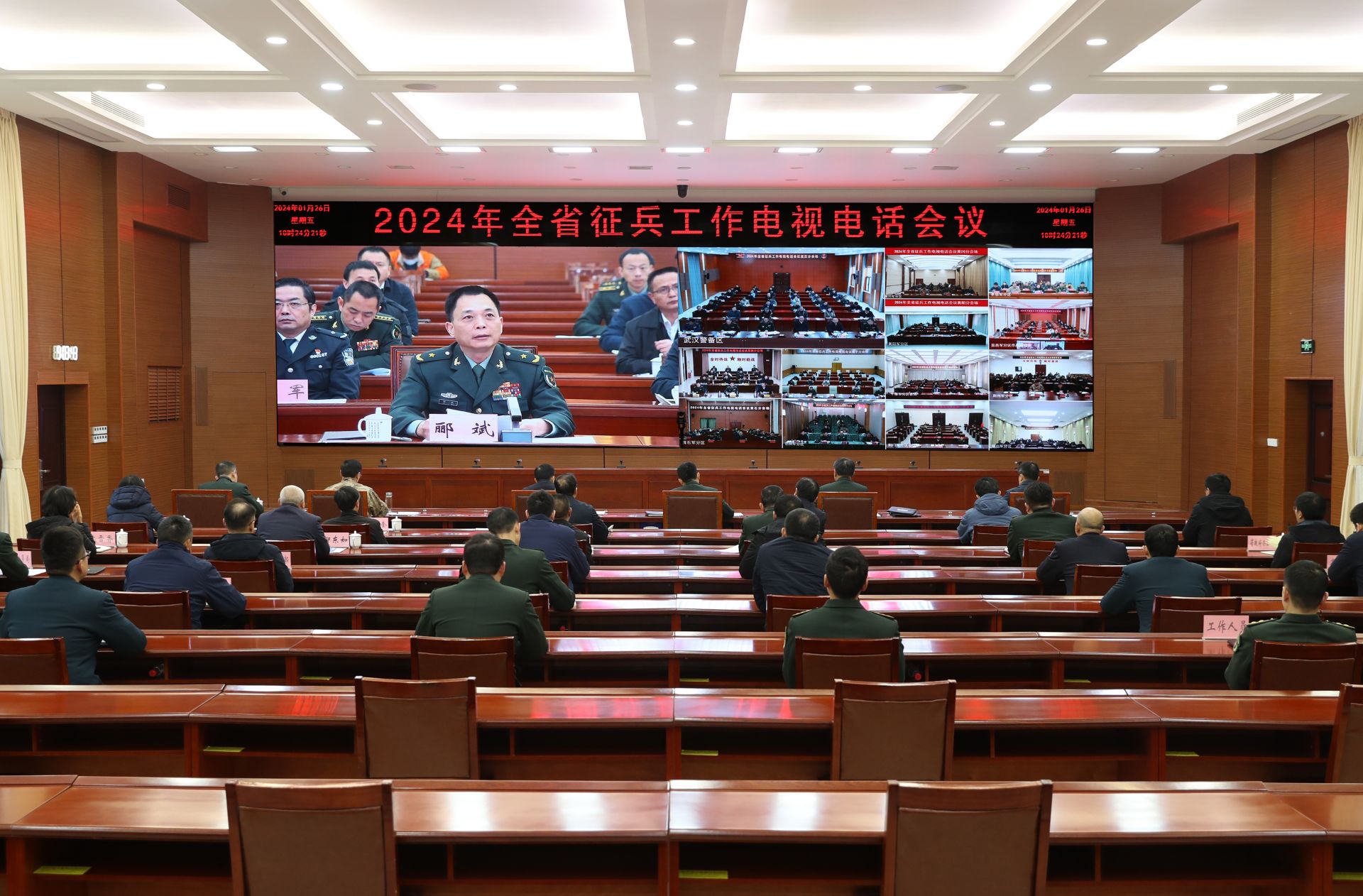 1月26日,2024年全省征兵工作會議在武漢召開。省軍區(qū)少將司令員酈斌、省政府黨組成員彭勇出席會議并講話,省軍區(qū)少將副司令員錢建余主持會議并宣讀了2023年全省征兵工作綜合考評情況通報。