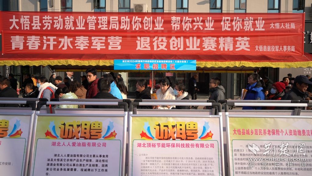 荊楚網(wǎng)(湖北日報網(wǎng))訊(通訊員易榮波 寧月 李怡 吳寶安)1月27日,大悟縣2024年春風行動啟動儀式暨現(xiàn)場招聘活動在鄂北物流城與全省同步舉行,現(xiàn)場求職者絡繹不絕,各企業(yè)展位前人潮涌動。