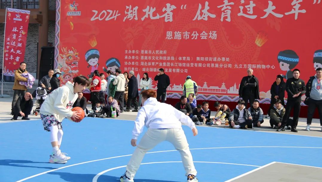 2024湖北省“體育過大年”恩施市分會場活動在恩施市工人文化宮廣場隆重舉辦。啟動儀式、競技類3v3籃球、親子運動會、新春大闖關(guān)、體驗類、棋牌類、體質(zhì)達標(biāo)測試6大類27小項,突出春節(jié)主題活動與全民健身、新式與傳統(tǒng)相結(jié)合,融入地方特色,將體育運動文化內(nèi)涵和全民健身主題與龍年新春佳節(jié)有效融合。