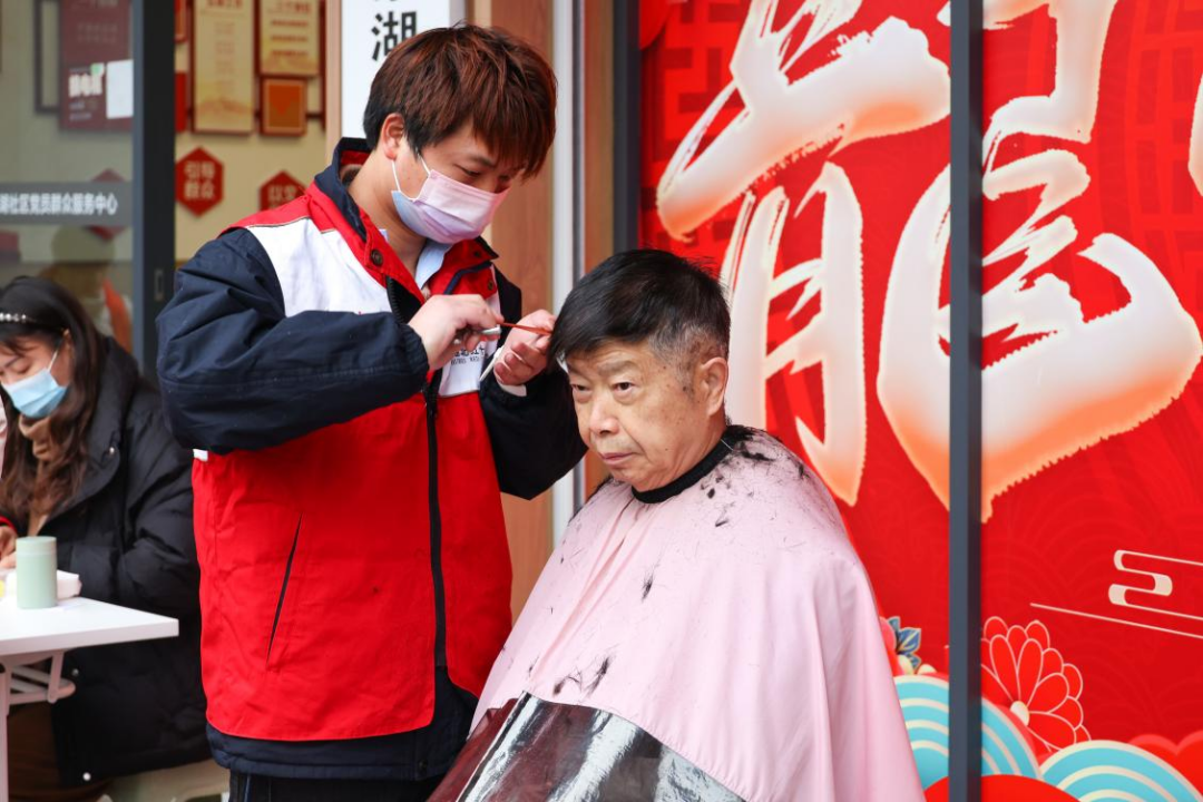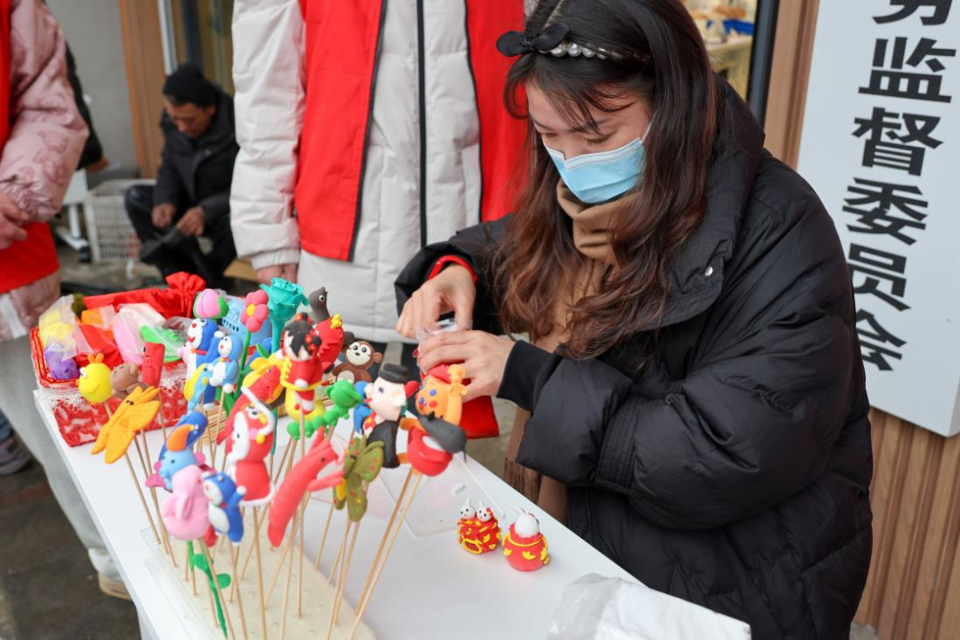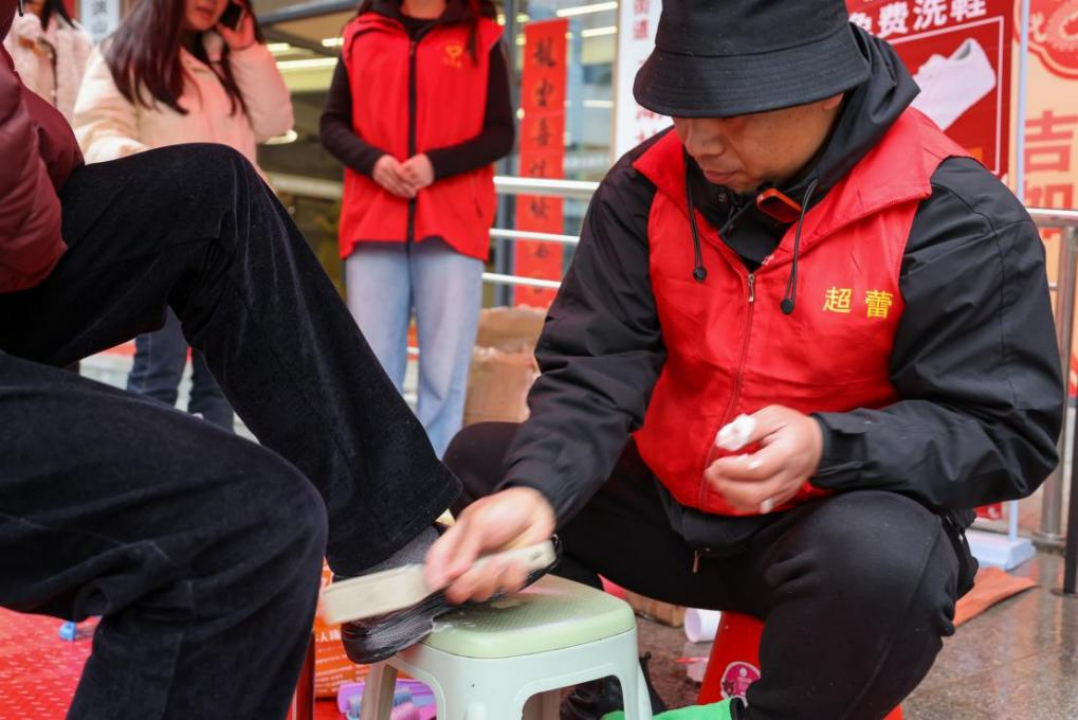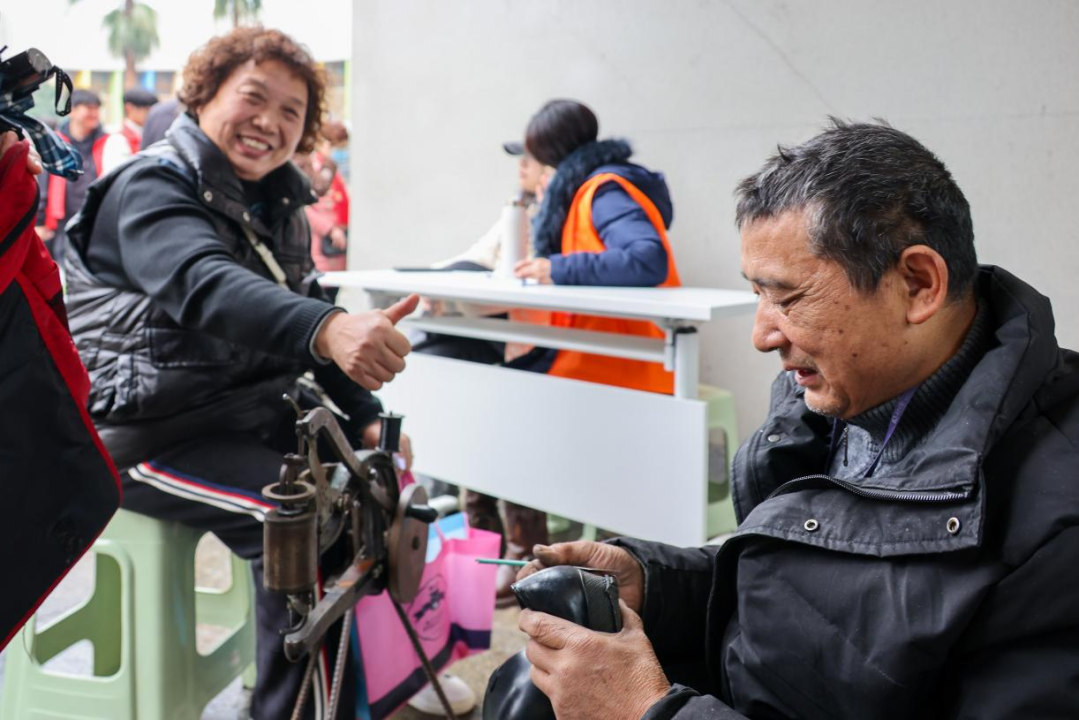 當(dāng)日清晨9點(diǎn),便民市集熱鬧開市。非遺手工藝捏泥人攤位大受歡迎,磨刀、理發(fā)、修鞋、修拉鏈、洗鞋等等便民服務(wù)點(diǎn)位更是人頭攢動(dòng),大學(xué)生志愿者團(tuán)隊(duì)參與其中,向老年朋友們介紹活動(dòng),指引大家有序參與。前來(lái)體驗(yàn)的老年朋友們,紛紛為這些貼心的安排豎起大拇指點(diǎn)贊。