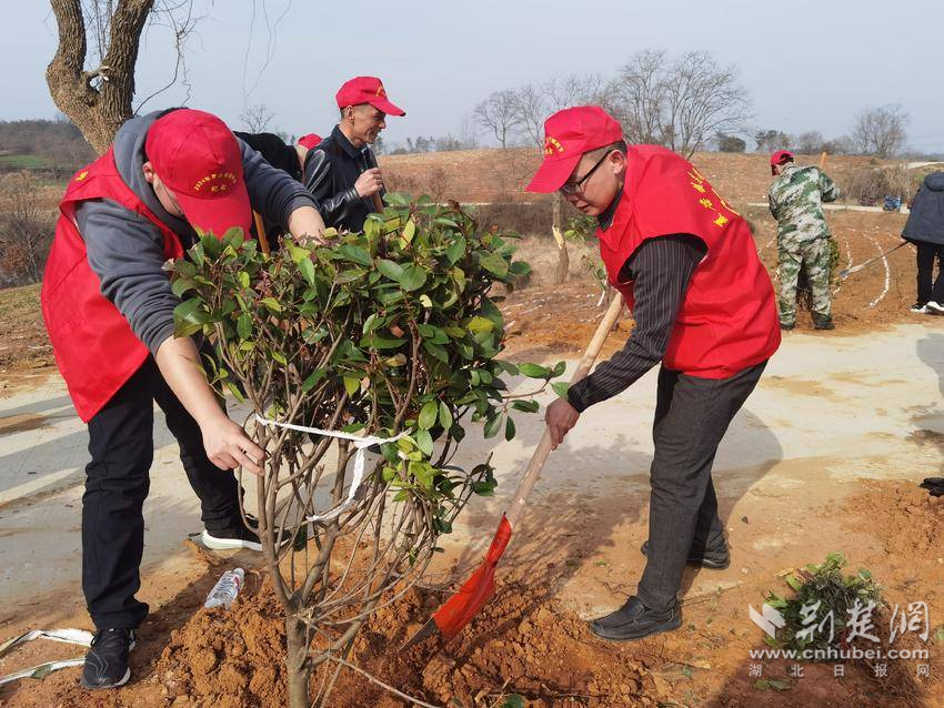 志愿者們身著醒目的“紅馬甲”,分工合作,配合默契,用鐵鍬、鐵鏟、鋤頭等工具,揮鍬鏟土挖樹坑、扶苗樹苗、培土澆水,經(jīng)過一上午的努力,志愿者栽植大規(guī)格桂花樹、娜塔櫟、本地楓香、側(cè)柏等樹苗5000株,500余畝荒山披上新綠。新栽的一株株樹苗在春日的陽光下生機(jī)勃勃,為初春的大地增添了新的綠意。