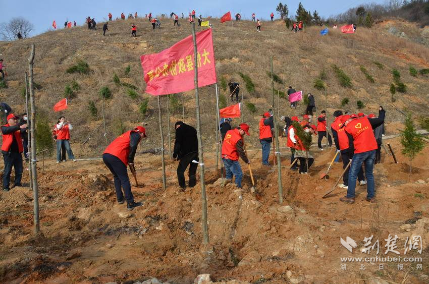 荊楚網(wǎng)(湖北日報(bào)網(wǎng))訊(通訊員易榮波 尹熙勝 付瑩瑩 李怡)3月12日,第46個(gè)植樹節(jié),在大悟縣陽平工業(yè)園北部荒山上,1800余名縣直各單位志愿者參加義務(wù)植樹活動。