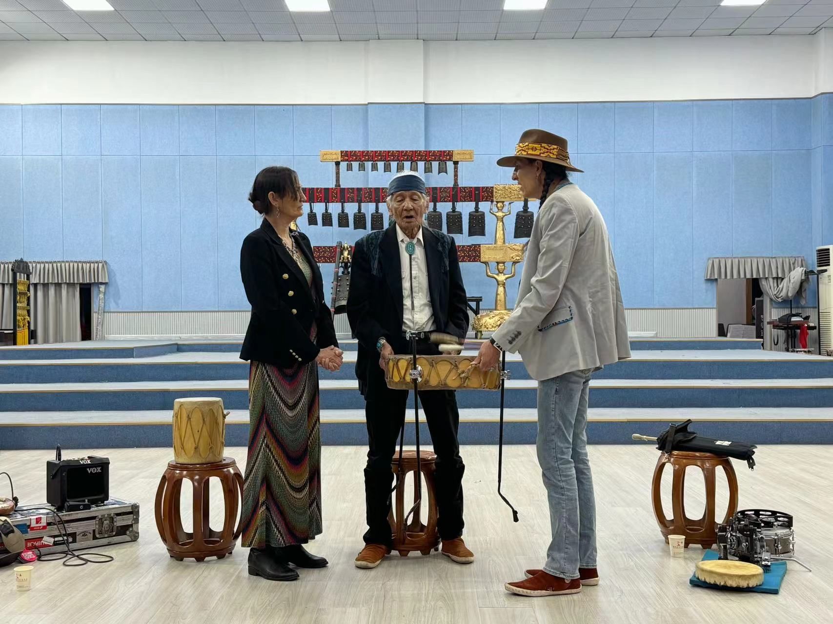 活動最后,Sihasin樂隊不僅帶來了極具迪內納瓦霍特色的歌舞表演,還邀請現場所有演員上臺進行即興創(chuàng)作。大家圍成一個圓,悠揚的琴聲與貝斯聲完美融合,歌聲此起彼伏,中美音樂文化的交融將現場的氣氛推向了高潮。