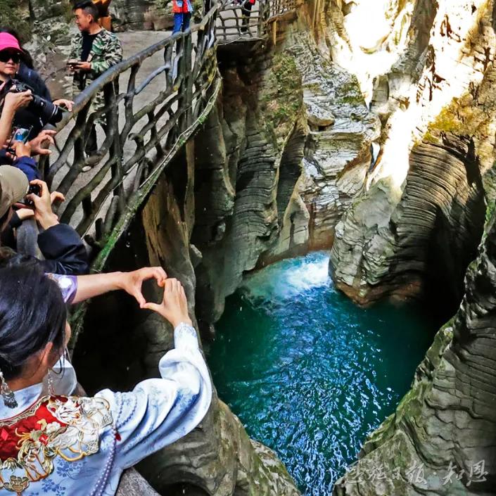 4月以來,隨著恩施地心谷景區(qū)游客接待連續(xù)突破5000人的旅游旺季到來,大量游客接踵而至,盡賞玻璃天橋、懸空棧道、嶂谷河床、巴鹽古道、空中魔毯等景色奇觀,體驗(yàn)鄂西南大山深處《地心之戀》《鹽道古風(fēng)》本土文化民俗傳奇與“地心崖漂”等互動(dòng)樂趣,驚喜連連。