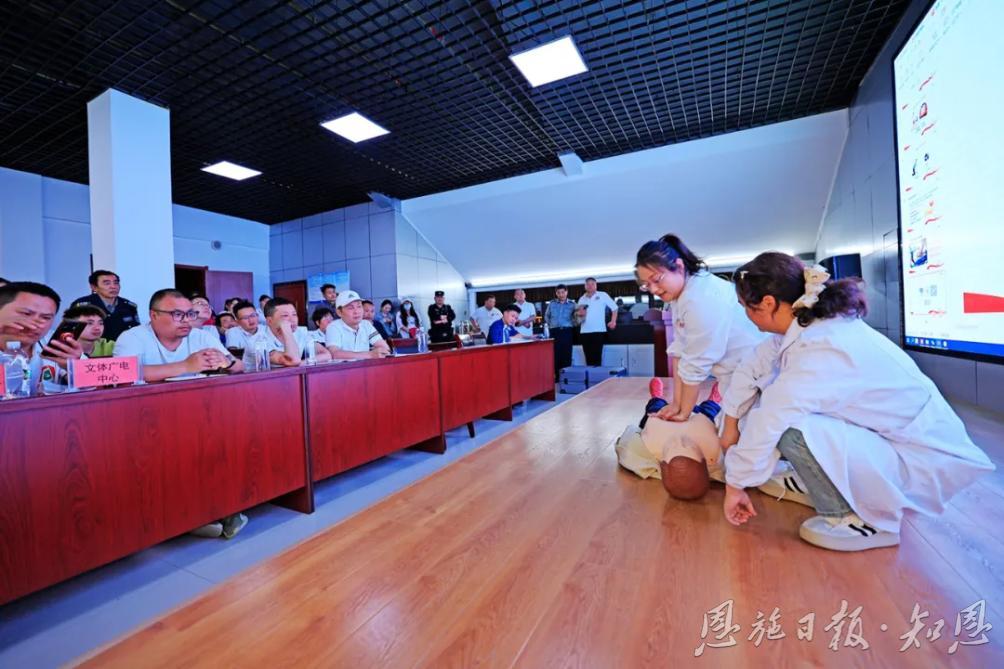 高坪鎮(zhèn)派出所在會(huì)上為大家培訓(xùn)了防踩踏事故、防恐與消防方面的培訓(xùn),高坪衛(wèi)生院為大家培訓(xùn)了救援知識(shí)與心肺復(fù)蘇等方面的培訓(xùn),并進(jìn)行了以上培訓(xùn)內(nèi)容的現(xiàn)場(chǎng)全體演練。