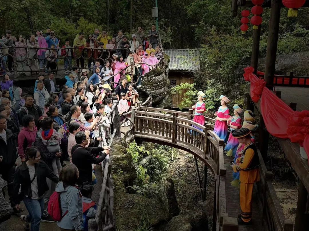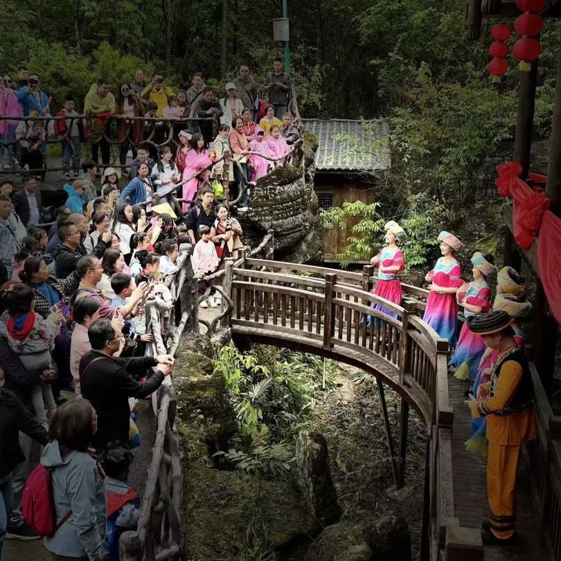 假日期間,各景區(qū)精彩活動不斷,產(chǎn)品供給持續(xù)豐富。恩施大峽谷景區(qū)現(xiàn)場教游客跳擺手舞,包你學會跳一支土家舞,現(xiàn)場贈送小禮品;“萌娃講解員”的講解別有一番看頭?!皪{谷之美”無人機帶飛,戴上飛行眼鏡,實現(xiàn)與穿越無人機人機合一,乘直升機飛躍峽谷空中游覽,俯瞰峽谷全貌,沉浸式體驗自由飛行穿越峽谷絕壁山巒??扉W表演、對歌、趣味答題讓排隊不再焦慮。沿途配以古箏、茶藝表演,拍照打卡,品茶聽琴,享受峽谷獨有的愜意旅途。