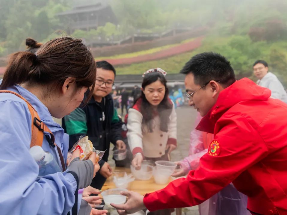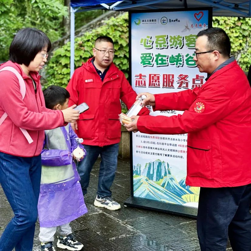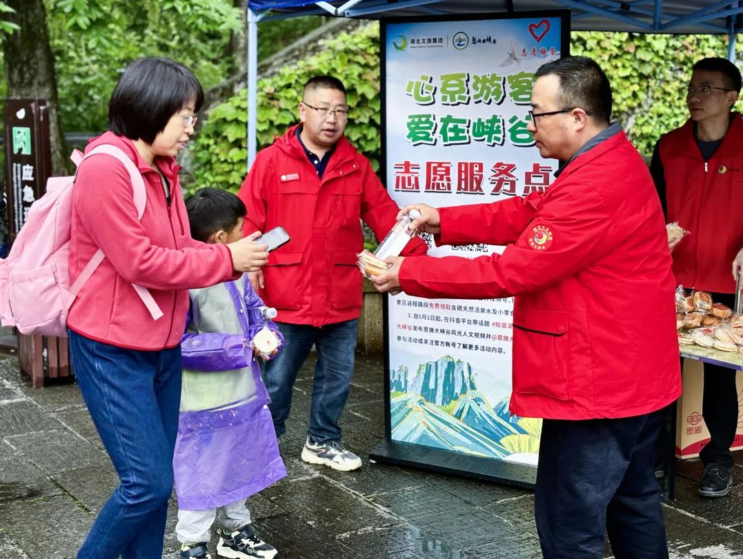 想您所想,盡我所能。大峽谷景區(qū)60多名志愿者以流動服務(wù)的方式將貼心服務(wù)送到游客身邊。分別在游客中心、小蠻腰垂梯出口、甘堰塘返程中心設(shè)立能量“補給站”,免費發(fā)放礦泉水、面包、雨衣。走累了,300臺按摩椅免費休息、放松;最特別之處放置吹風機、暖風機,時而的濛濛細雨讓淋雨的游客及時烘烤濕衣、吹干頭發(fā);在海拔相對高的區(qū)域,現(xiàn)場熬制熱氣騰騰的稀飯、沖泡特色玉露茶,在旅途中,既暖心又暖胃。