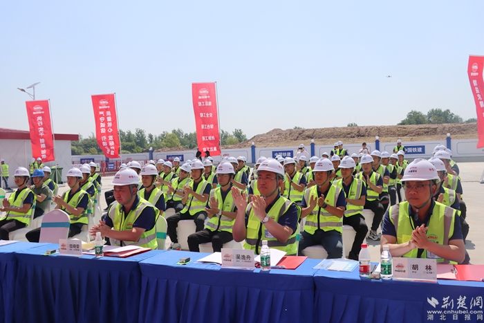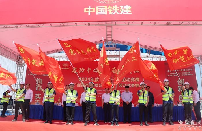 荊楚網(wǎng)(湖北日報(bào)網(wǎng))訊(記者陶輝 通訊員劉聰 陳玨 秦楣)紅旗招展,誓言鏗鏘。5月10日,在位于麻城市鼓樓街道秦家崗的合武高鐵湖北段HWZQ-1標(biāo)4號拌和站,一場鼓舞人心的勞動(dòng)競賽推進(jìn)會(huì)火熱舉行。