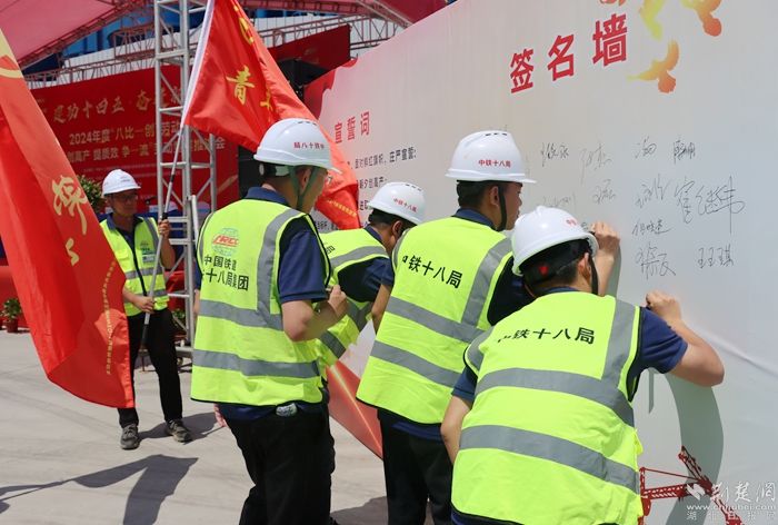 “我是一名光榮的建設(shè)者,面對鮮紅旗幟,莊嚴(yán)宣誓: 快速制勝,安全至上,只爭朝夕創(chuàng)高產(chǎn);精細(xì)管理 創(chuàng)譽(yù)創(chuàng)效,銳意進(jìn)取提質(zhì)效;勇當(dāng)標(biāo)桿,建造精品,實(shí)干興企爭一流。我鄭重承諾……堅(jiān)決做到……”建設(shè)者們的眼中閃爍著堅(jiān)定的光芒,現(xiàn)場的氣氛被這一番誓言推向了高潮。