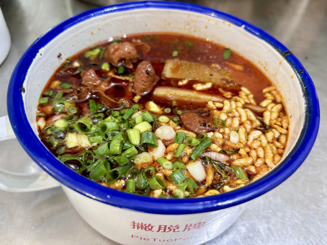 盞精巧的盅盅面,如詩如畫的面條纏繞其間,調(diào)料豐富卻又不過于濃烈,每一筷子都是清晨巷陌人間煙火的真實寫照,平淡中蘊藏著生活的真諦。