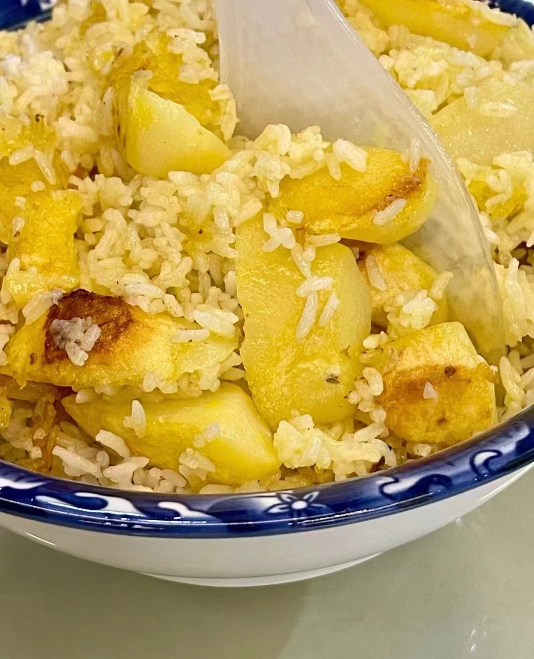 土灶上升騰的煙火氣中,金黃土豆與潔白米飯相互依偎,共舞一曲凡塵中的美食贊歌。揭開鍋蓋,香氣撲鼻,這不僅是簡單的飯菜,更是家的溫度和生活的本質(zhì)。