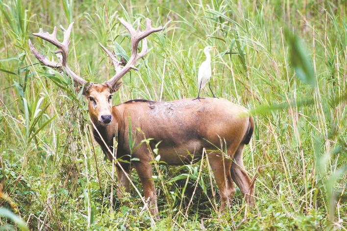【名片】麋鹿是中國特有物種,為國家一級重點(diǎn)保護(hù)野生動(dòng)物,被列入《世界自然保護(hù)聯(lián)盟瀕危物種紅色名錄》。