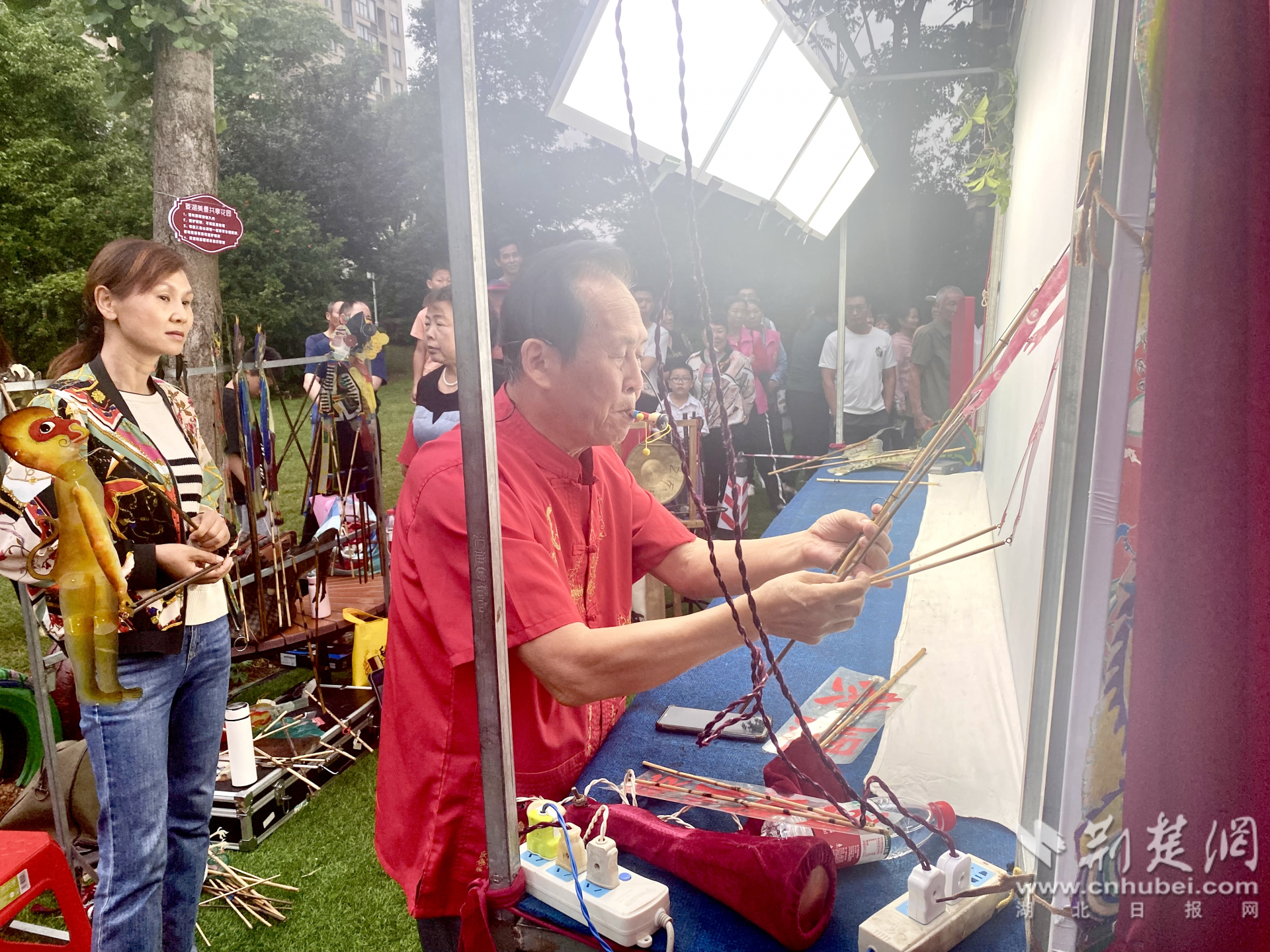 荊楚網(wǎng)(湖北日?qǐng)?bào)網(wǎng))訊(通訊員 陳保忠 )5月31日,云夢(mèng)皮影大師秦禮剛帶領(lǐng)團(tuán)隊(duì),在武漢市菱湖美景小區(qū)拾光共享花園演出傳統(tǒng)皮影劇目:《武松打虎》和《猴王借扇》。武漢科技大學(xué)部分學(xué)生和該社區(qū)居民觀看演出。觀眾中有上到八九十歲的老人,下到二三歲的娃娃,共計(jì)二百多名觀眾在現(xiàn)場(chǎng)觀看演出。