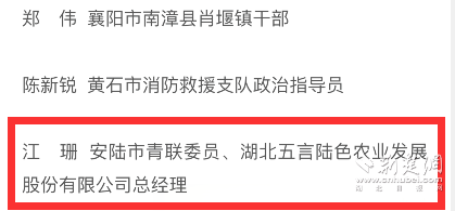 荊楚網(wǎng)(湖北日報網(wǎng))訊(通訊員 黃灒)今年4月,共青團湖北省委聯(lián)合省委宣傳部、省委講師團舉辦了“悅學(xué)習(xí)·躍青春——正奮斗”2024年湖北青年宣講大賽,共12名選手晉級決賽。在5月11日舉行的決賽中,安陸市青聯(lián)委員、湖北五言陸色農(nóng)業(yè)發(fā)展股份有限公司總經(jīng)理江珊榮獲大賽“二等獎”。