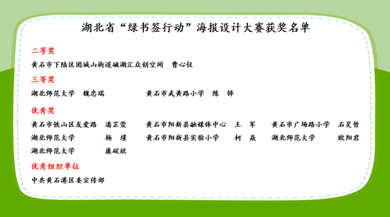 活動期間,現(xiàn)場還公布了黃石市參加2024年湖北省“綠書簽行動”海報設計大賽優(yōu)秀作品、優(yōu)秀組織單位,并為獲獎單位和代表進行頒獎。